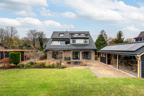 Daarnaast is er een praktische inpandige berging met aansluiting voor wasmachine en droger en ruimte voor de cv-ketel. In de onderbouw bevindt zich een eigen berging én een garagebox, beide bereikbaar via een automatische, op afstand bedienbare deur.